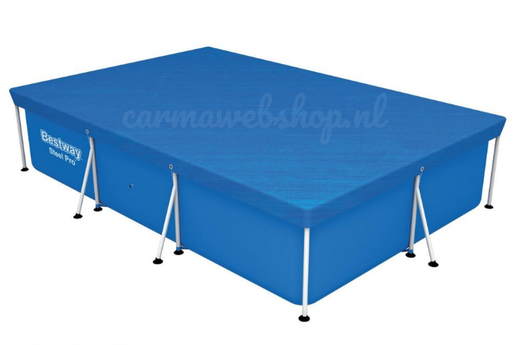 Afdekkleed voor rechthoekige zwembaden met een stalen frame. Dit kleed valt over het zwembad heen. Incl. koord om het vast te zetten. Afmeting: 264×174 cm.
