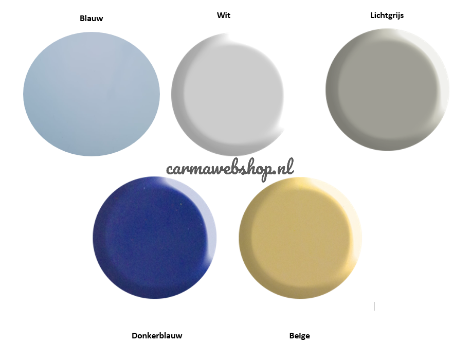 | Kleuren | Beige, Blauw, Donker blauw, Licht grijs, Wit |