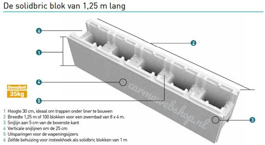 SolidBric zwembad bouwblokken zijn snel en eenvoudig te monteren. Eenvoudig op maat te maken, perfecte isolatie, snelle manier van opbouwen voor mooie en strakke muren. De zwembad bouwblokken zijn van zeer hoge kwaliteit. Zwembad Bouwblokken bestaan uit geëxpandeerd polystyreen, die gebruikt worden om een zwembad te bouwen dat vervolgens wordt bewapend en gevuld met beton.